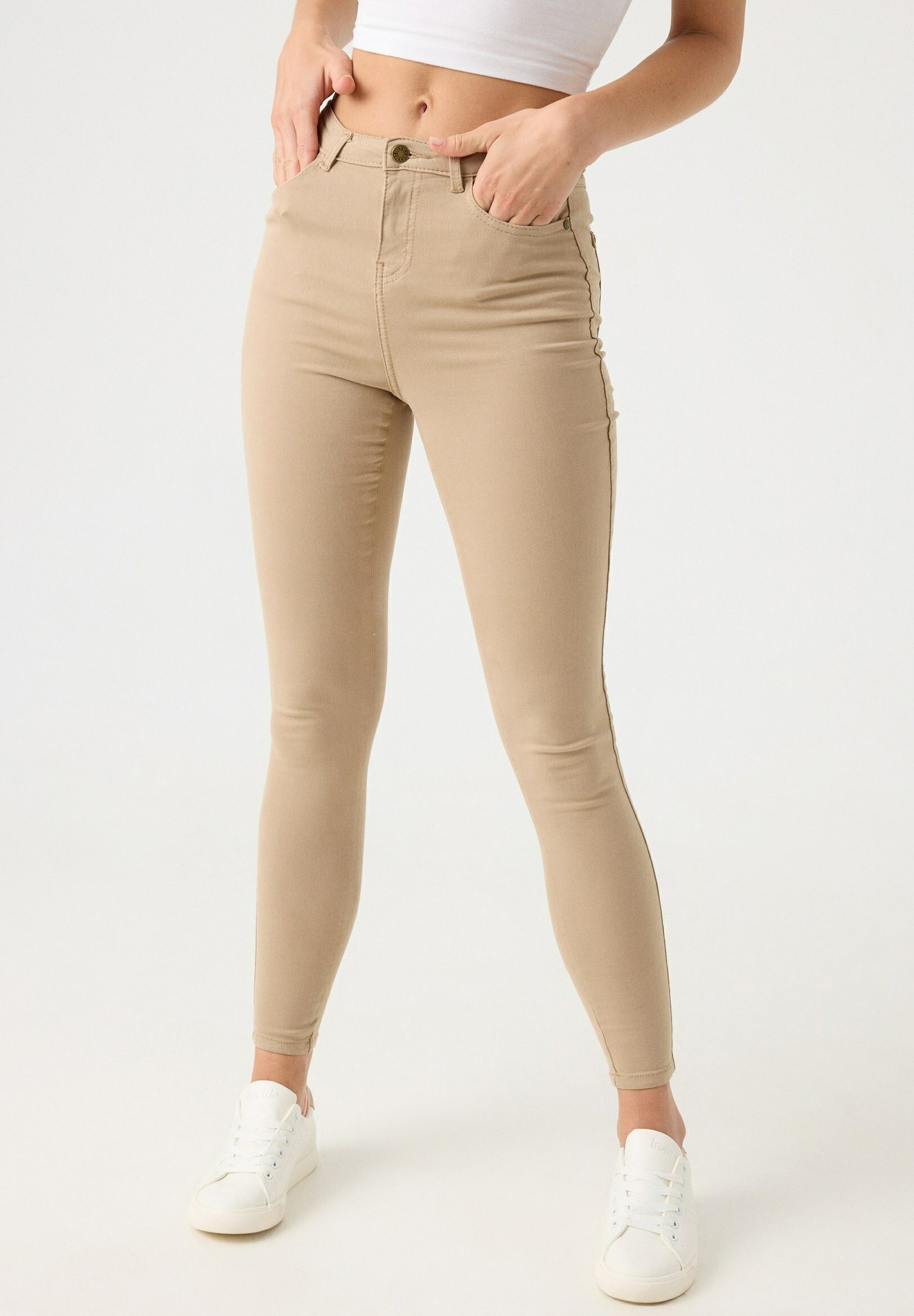 jeans beige mujer
